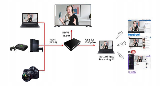 Dzięki wbudowanym interfejsom audio z łatwością podłączysz dodatkowy mikrofon, zewnętrzne źródło dźwięku oraz słuchawki. Wyjście HDMI pass-through pozwoli na podłączenie dodatkowego monitora do podglądu, a dzięki obsłudze sygnałów wideo o wyższej liczbie klatek na sekundę podłączymy najnowsze kamery, konsole najnowszej generacji i inne urządzenia HDMI 4K – tym razem również w 4K do 60 kl/s, a nie jak w wielu innych modelach, w których sygnał wejściowy 4K ograniczony jest do 30 kl/s.